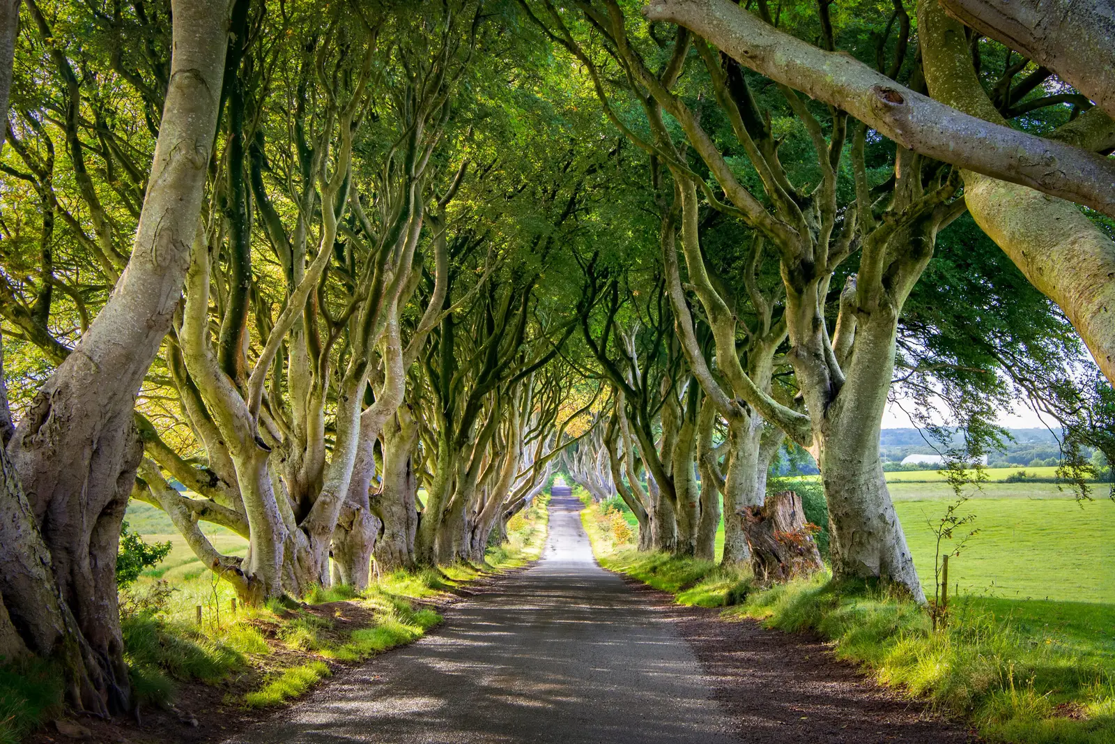 One of Ireland’s most photographed and atmospheric landscapes, The Dark Hedges is a breathtaking avenue of intertwined beech trees that create a natural tunnel over the road. Planted in the 18th century by the Stuart family as an impressive entrance to their estate, these hauntingly beautiful trees have become one of Northern Ireland’s most iconic sites.